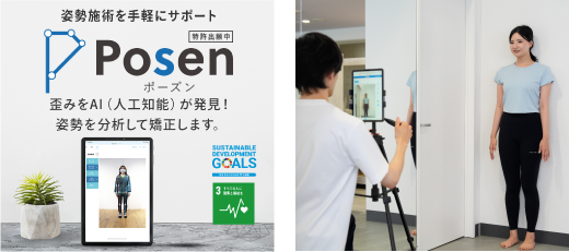 正面からの姿勢、横からの姿勢を撮影してAIがスコア化。